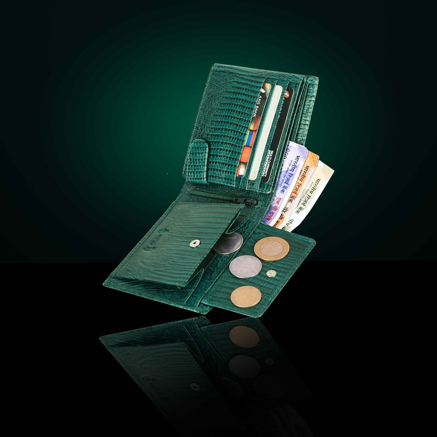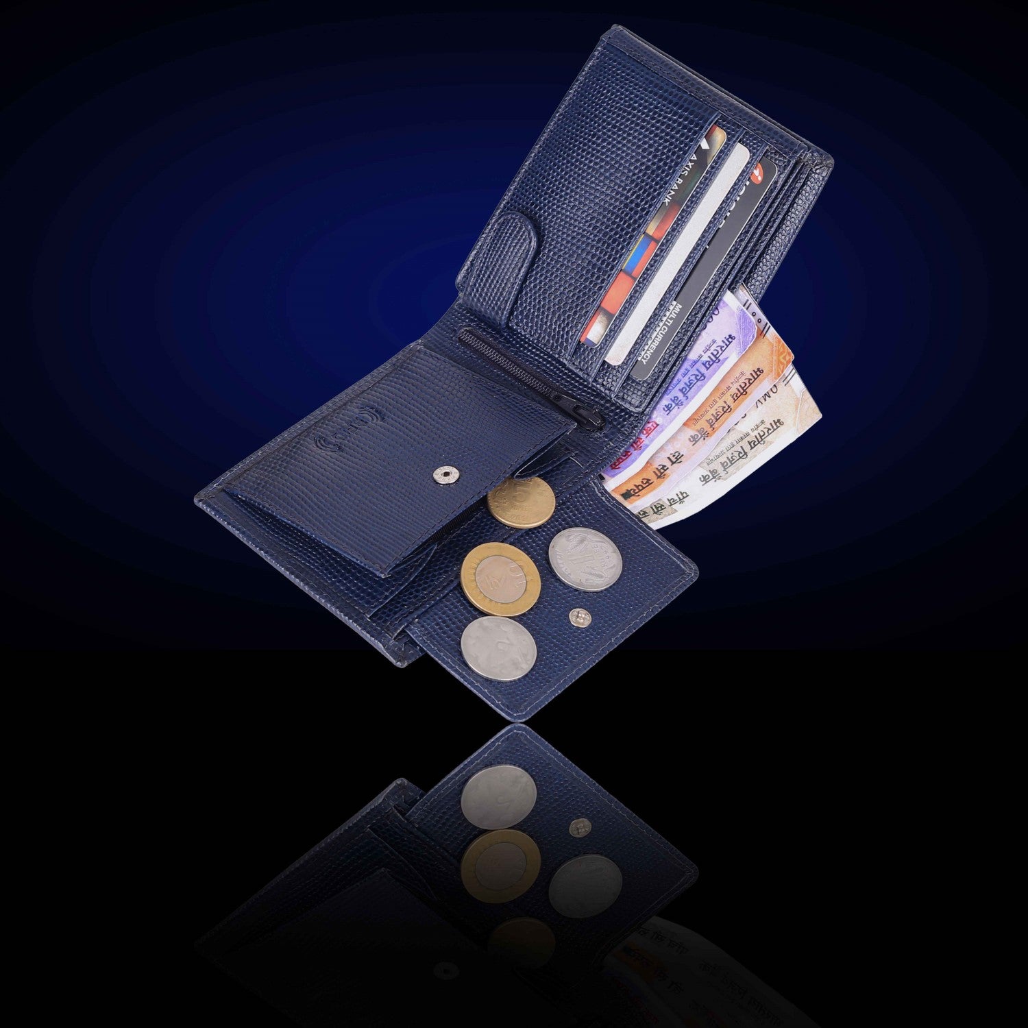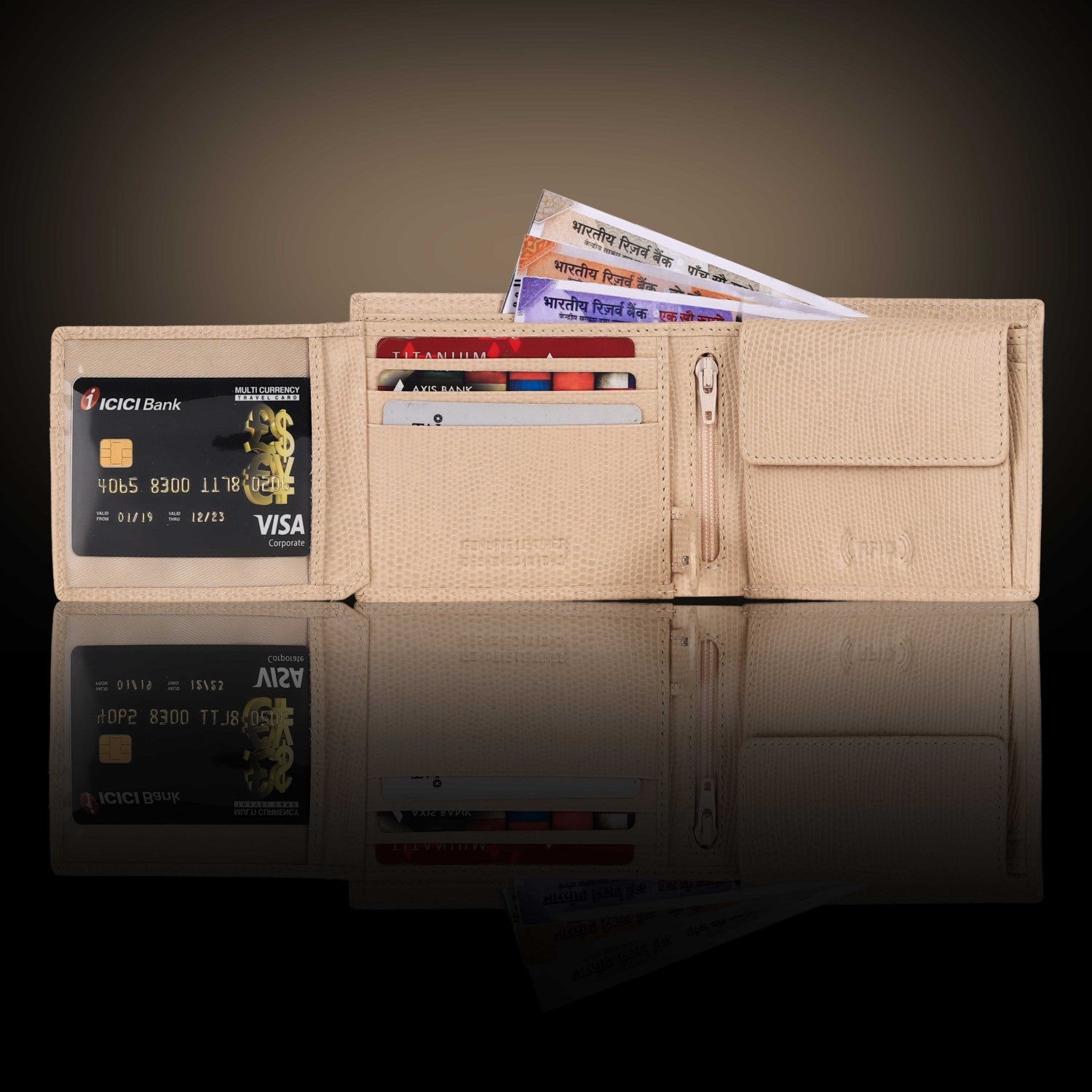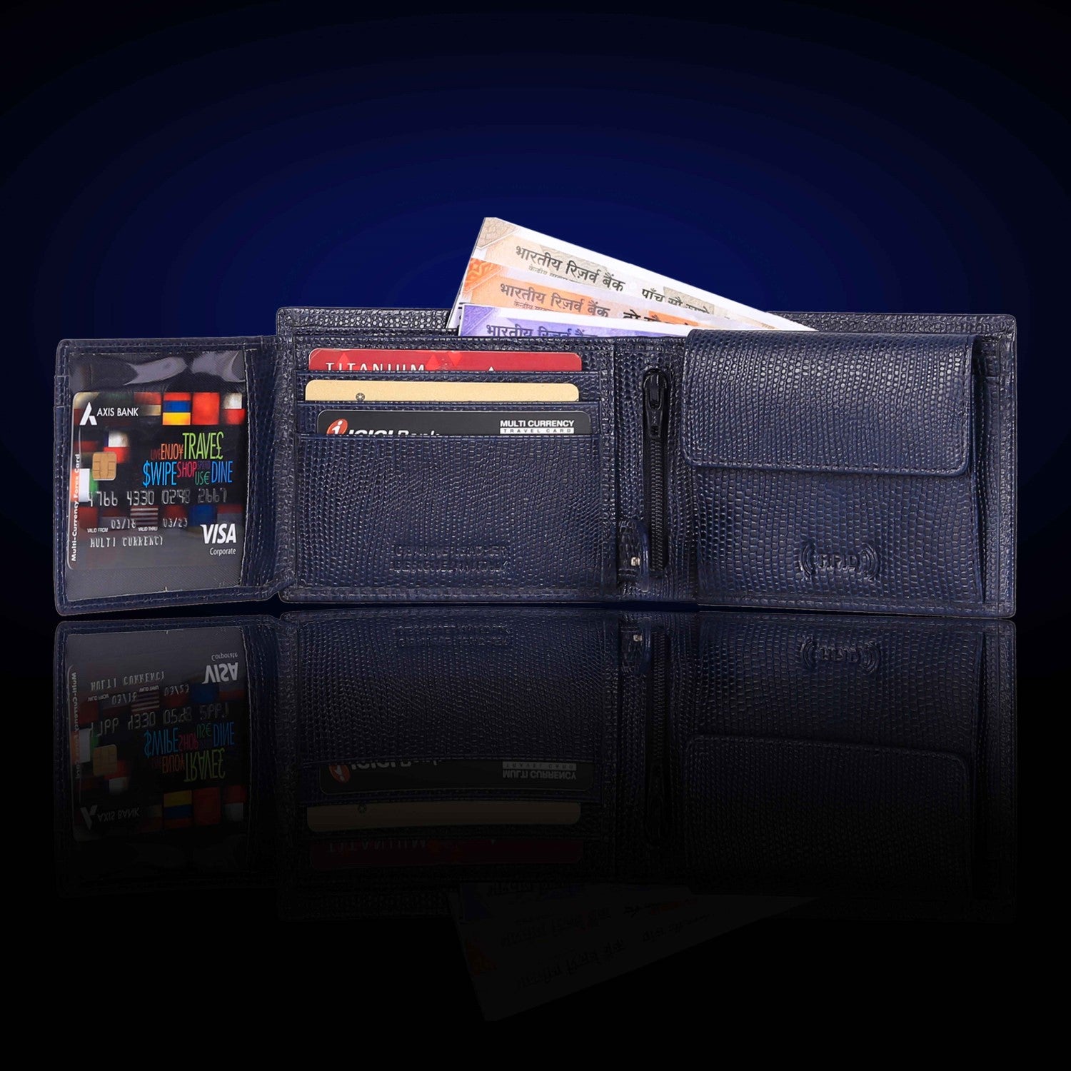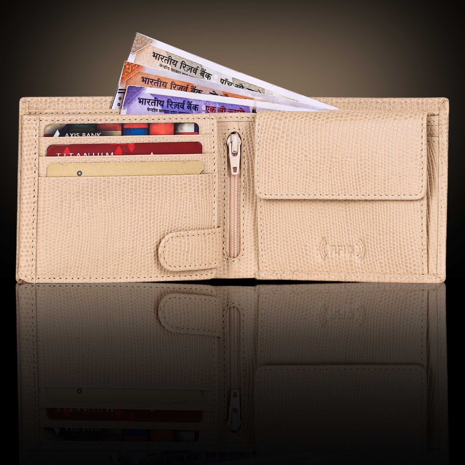 Presenting a high quality trendy & stylish Genuine Leather Bi-fold wallet from the HOUSE OF BULLZANO. Fully handmade this exclusive BULLZANO NILE leather wallet for men comes with 6 credit card slots, 1 hidden compartment, 1 transparent window for all your IDs, 2 currency slots, 1 specious coin , 1 zip pocket in the centre. Its Italian design ensures a comfort able fit in any pocket. It is fully RFID protected for total security from data theft. This wallet is made out of real leather and variation in colour is leather's natural quality, so proves that it is genuine leather. GIFT BOXED: This wallet comes in an elegant black BULLZANO gift box