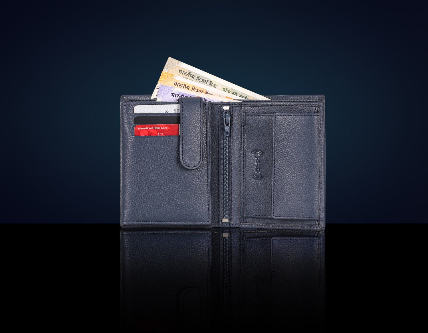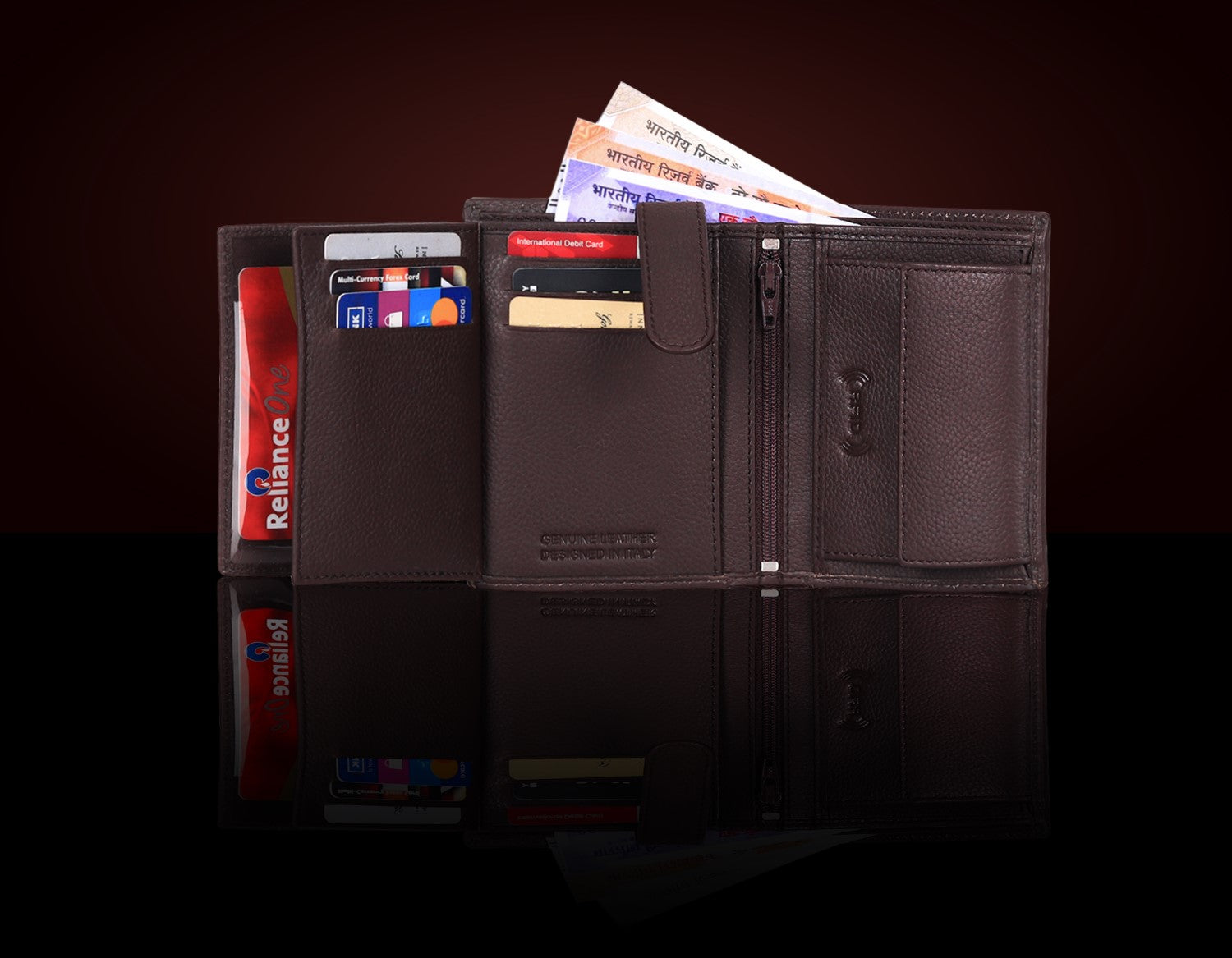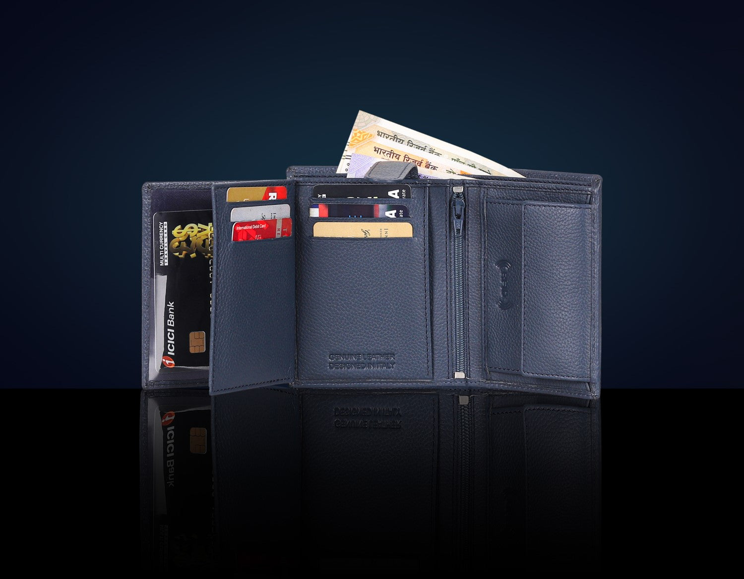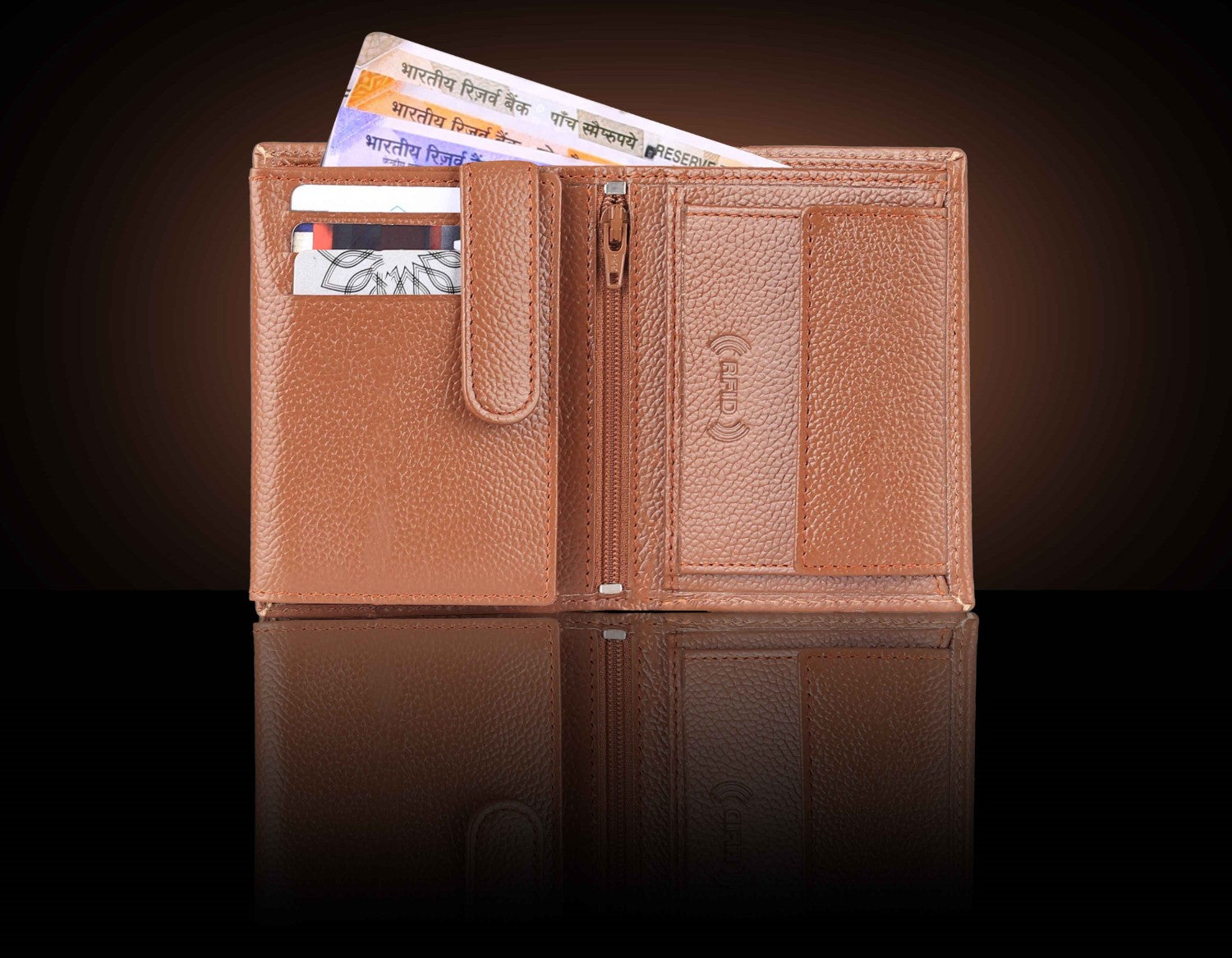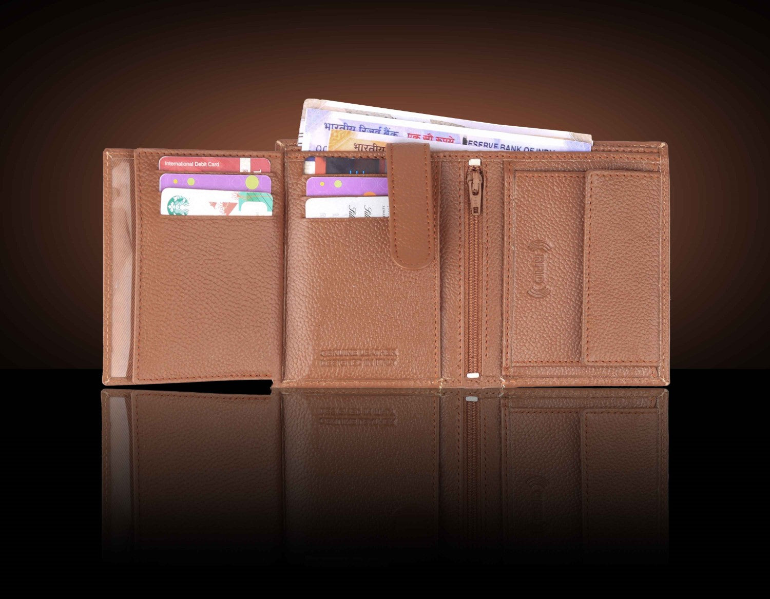 Presenting a high quality trendy and formal Genuine Leather Bi-fold wallet from THE HOUSE OF BULLZANO. Fully handmade this exclusive BULLZANO STALWARTBi-fold Leather allet for mencomes with 9 credit card slots, 2 hidden compartments, 2 transparent windows for all your IDs, 1 middle zip compartment, 2 currency slots, 1 specious coin pocket. Its Italian design ensures a comfortable fit in any pocket. It is fully RFID protected for total security from data theft. This wallet is made out of real leather and variation in colour is leather's natural quality, so proves that it is genuine leather. GIFT BOXED: This wallet comes in an elegant black BULLZANO gift box