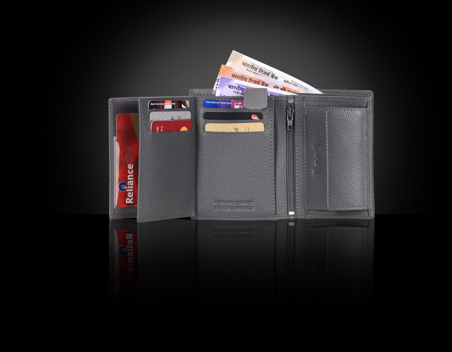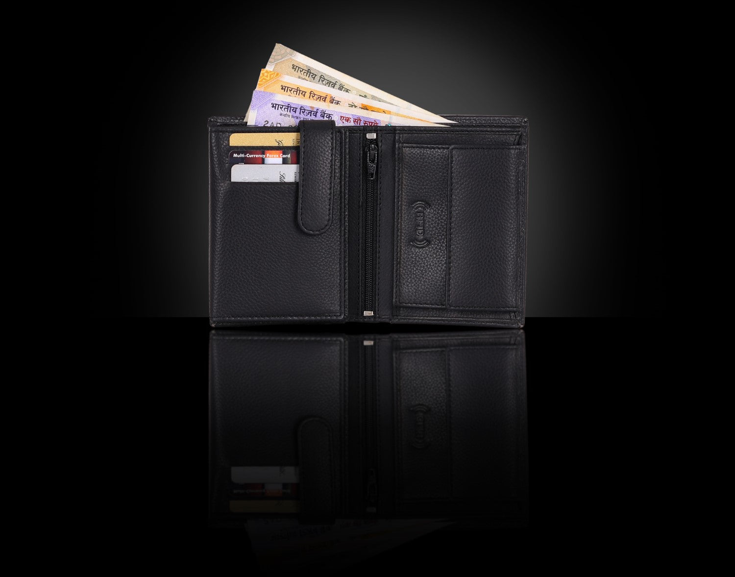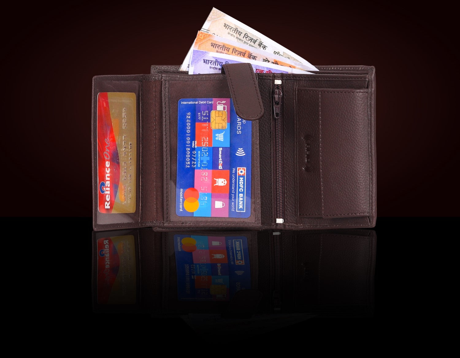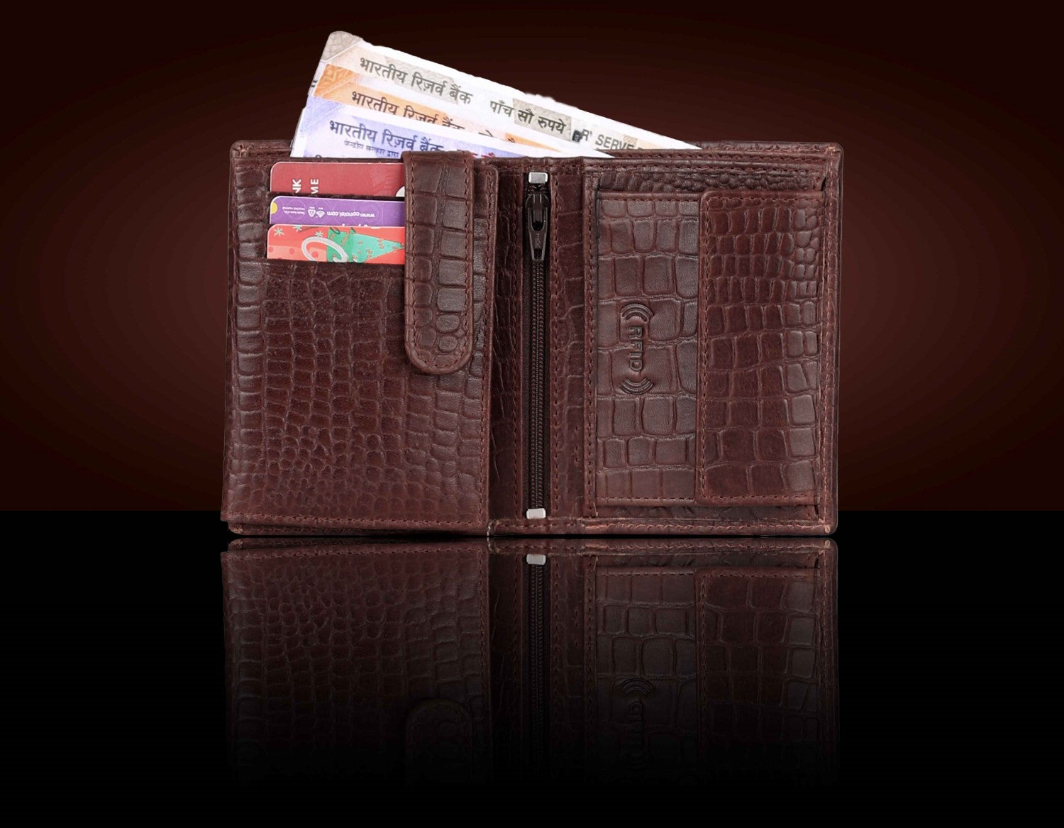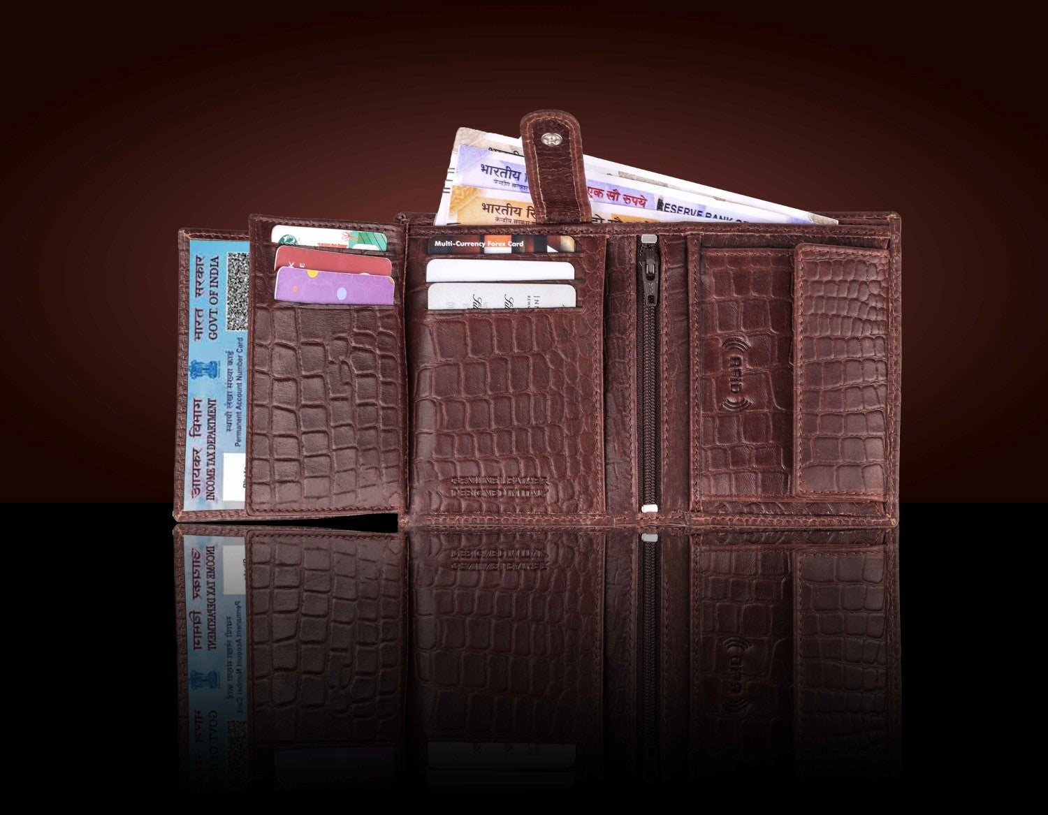 Presenting a high quality trendy and formal Genuine Leather Bi-fold wallet from THE HOUSE OF BULLZANO. Fully handmade this exclusive BULLZANO STALWARTBi-fold Leather allet for mencomes with 9 credit card slots, 2 hidden compartments, 2 transparent windows for all your IDs, 1 middle zip compartment, 2 currency slots, 1 specious coin pocket. Its Italian design ensures a comfortable fit in any pocket. It is fully RFID protected for total security from data theft. This wallet is made out of real leather and variation in colour is leather's natural quality, so proves that it is genuine leather. GIFT BOXED: This wallet comes in an elegant black BULLZANO gift box