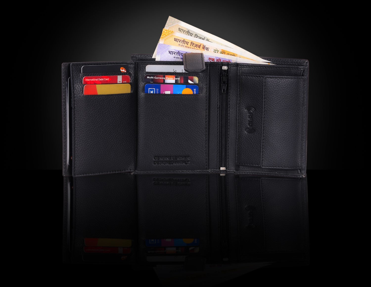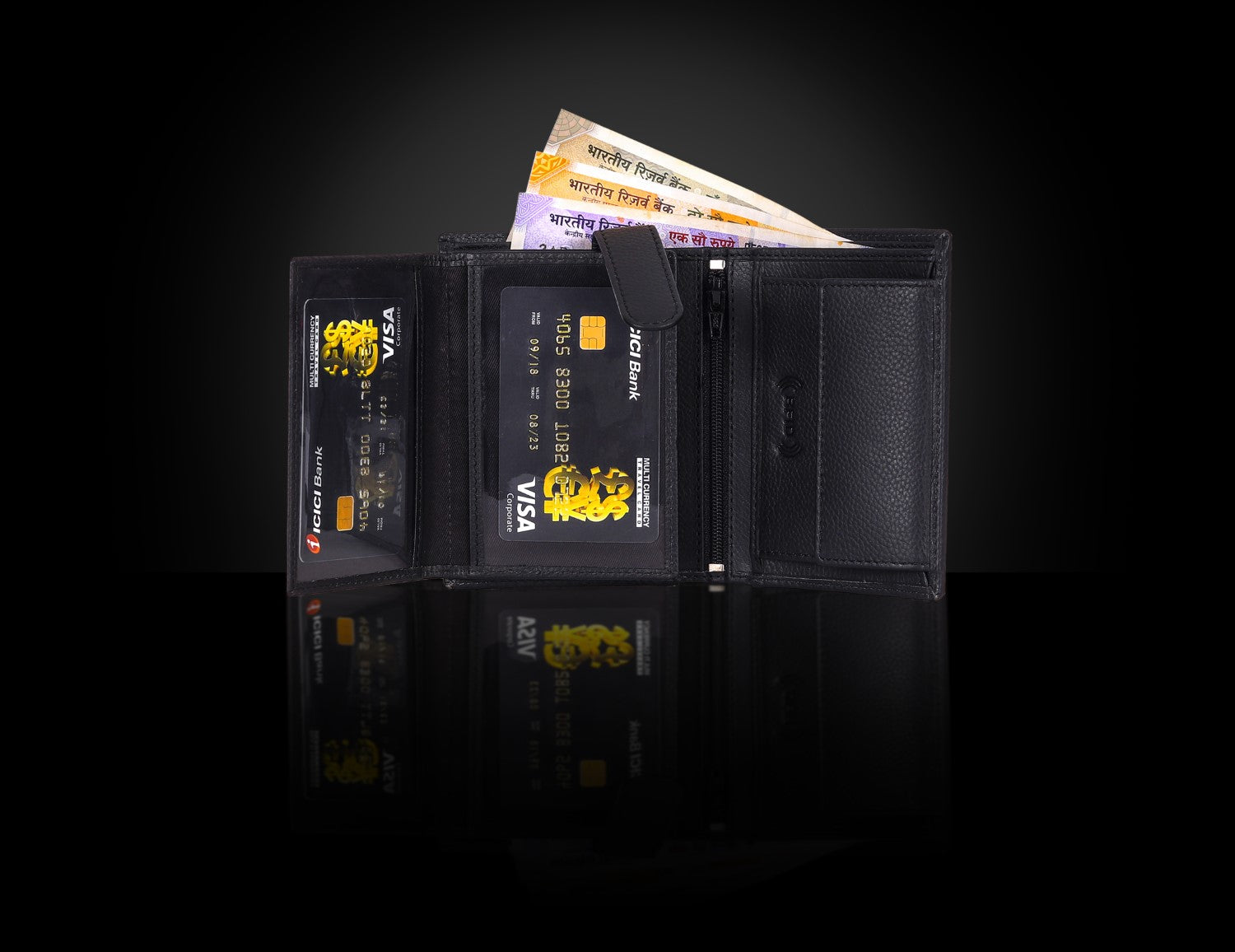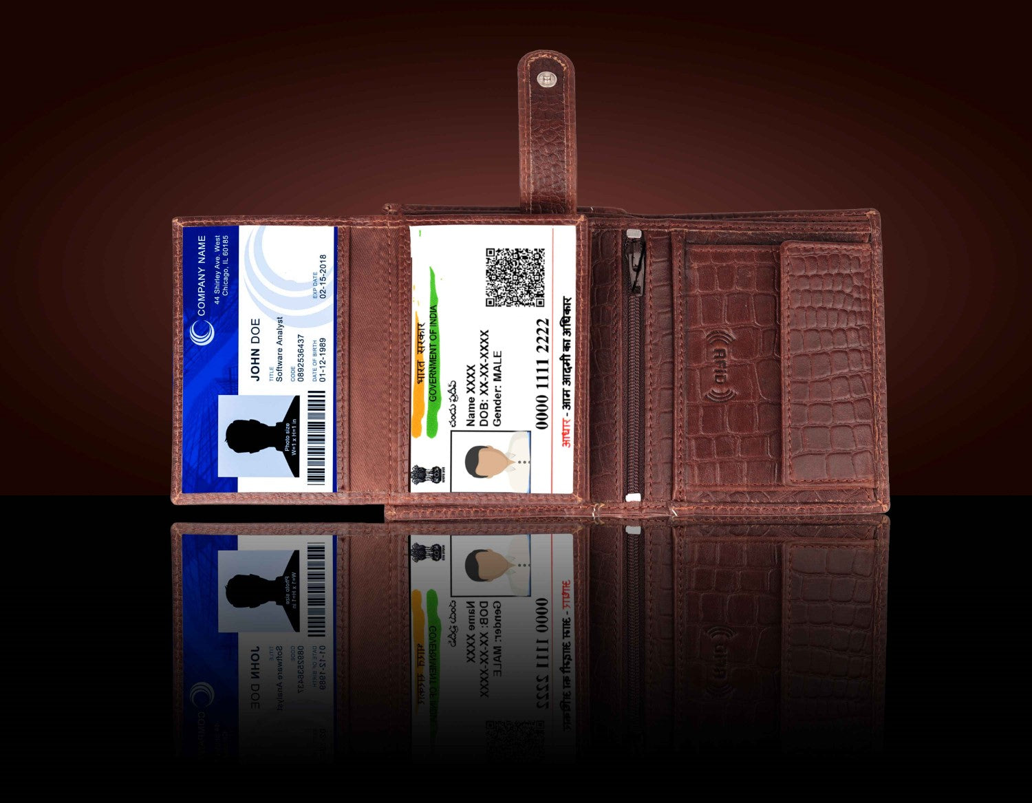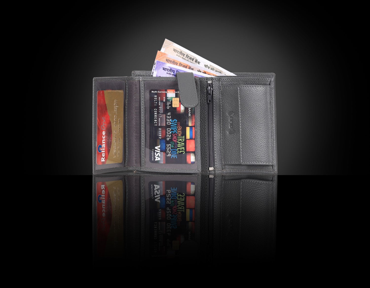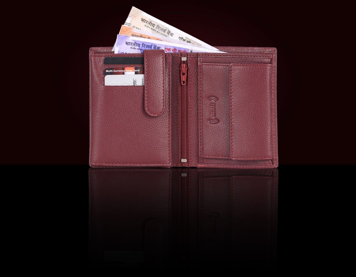 Presenting a high quality trendy and formal Genuine Leather Bi-fold wallet from THE HOUSE OF BULLZANO. Fully handmade this exclusive BULLZANO STALWARTBi-fold Leather allet for mencomes with 9 credit card slots, 2 hidden compartments, 2 transparent windows for all your IDs, 1 middle zip compartment, 2 currency slots, 1 specious coin pocket. Its Italian design ensures a comfortable fit in any pocket. It is fully RFID protected for total security from data theft. This wallet is made out of real leather and variation in colour is leather's natural quality, so proves that it is genuine leather. GIFT BOXED: This wallet comes in an elegant black BULLZANO gift box