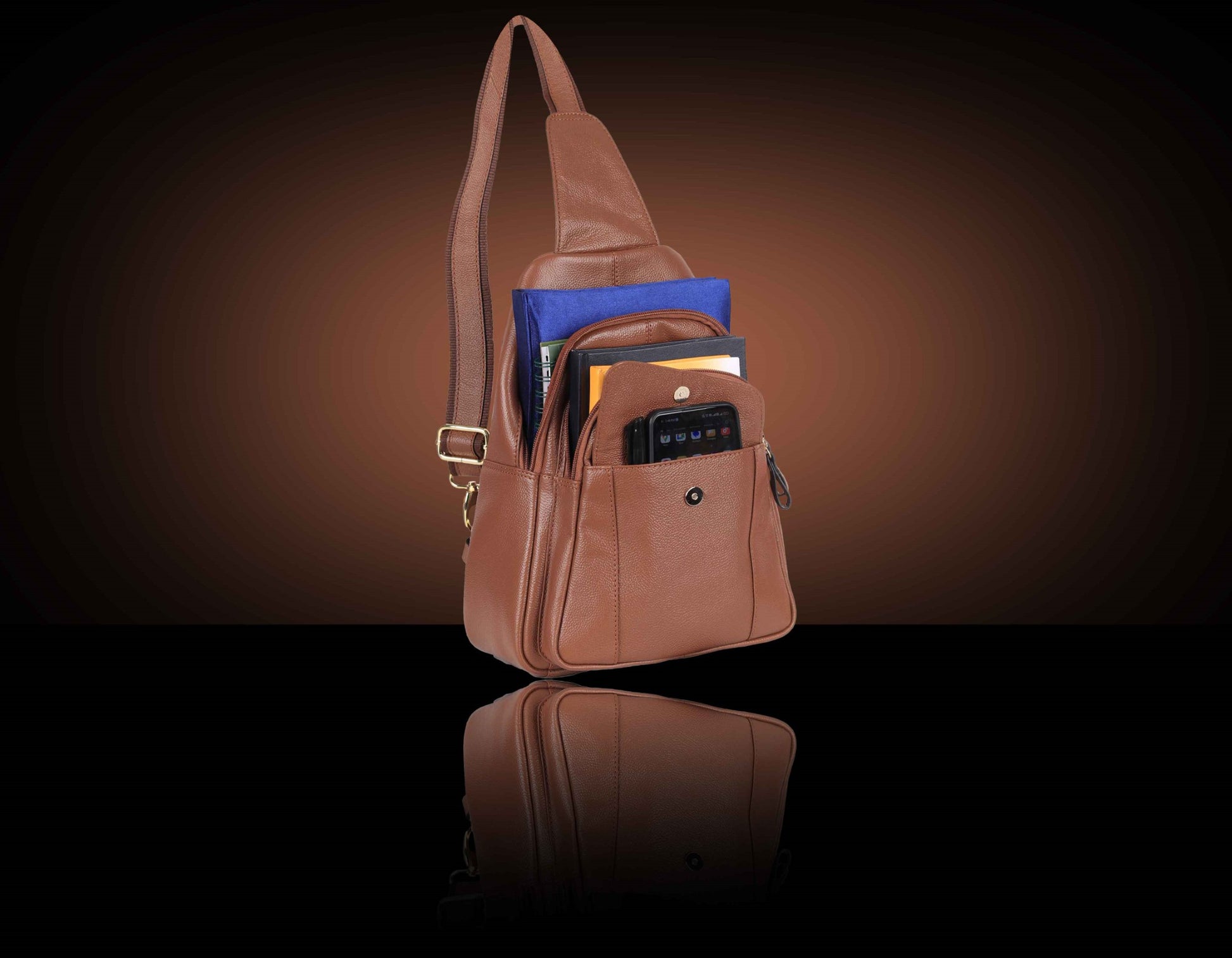 Presenting a high quality trendy and party genuine leather chest bag from the HOUSE OF BULLZANO. Fully handmade this exclusive BULLZANO UNO zip closure unisex leather bag comes with 1 main zip compartment with 3 specious zip partition pocket inside, 2 smart phone slots,I-Pad slot and a zip pocket on the back side of the bag. Its Italian design ensures a comfortable fit as a shoulder bag or crossbody sling bag. This bag is made out of real leather and variation in colour is a natural quality and proves that it is genuine leather.