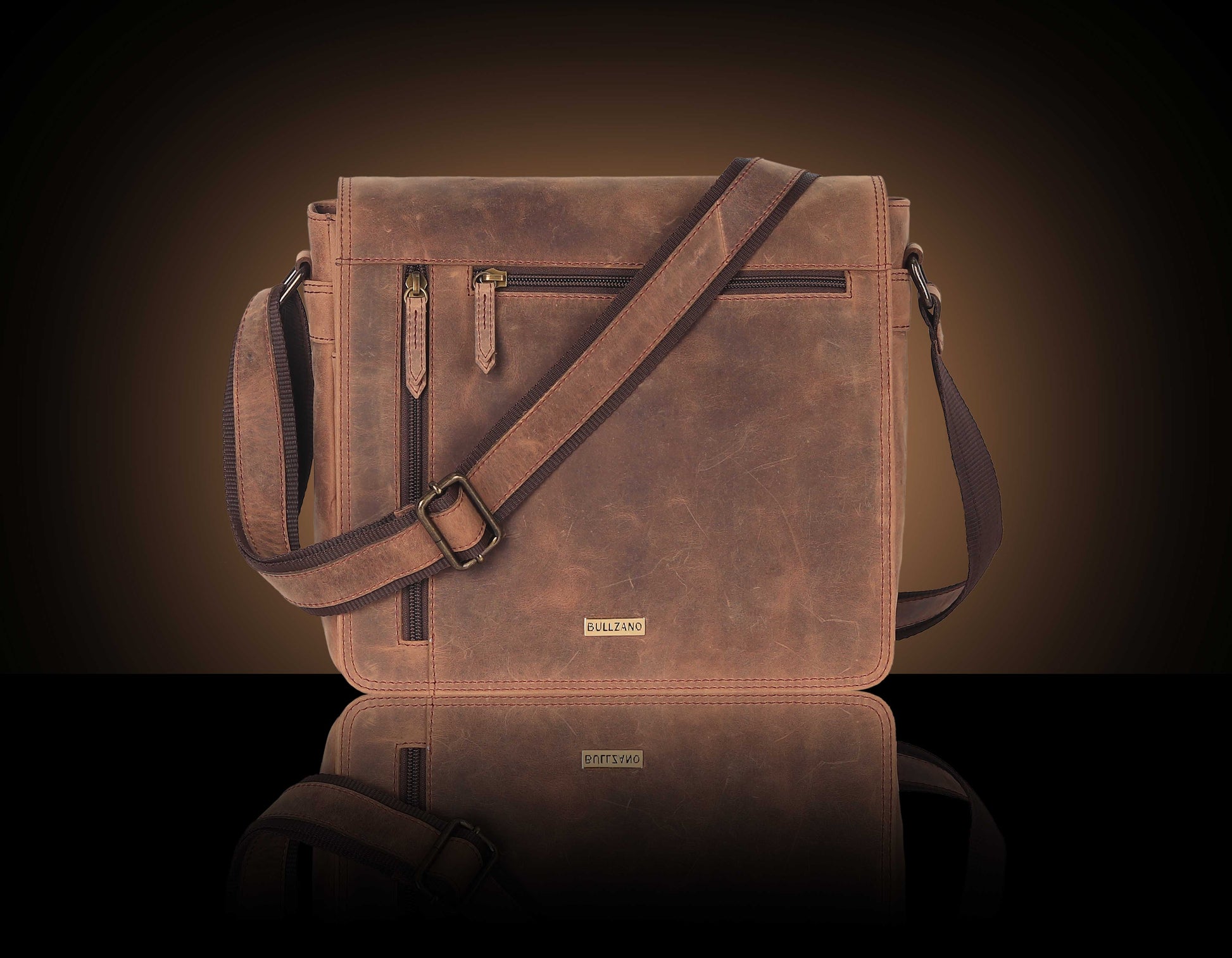 Presenting a high quality trendy & rugged genuine leather crossbody messenger bag from THE HOUSE OF BULLZANO. Fully handmade this exclusive BULLZANO HUNTER flap closure leather bag comes with 1 main zip with 2 inside large specious compartments for all your needs and 1 smart phone pocket, 1 I-Pad sleeve,1 inside back wall zip pocket, 1 front extra zip pocket, 4 card slots inside and 1 zip pocket on the back. Its Italian design ensures a comfortable fit as a crossbody sling bag with adjustable long shoulder handle. This bag is made out of real leather and variation in colour is a natural quality and proves that it is genuine leather.